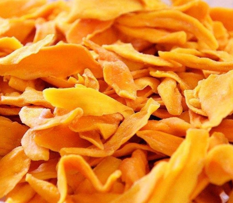 去皮切片:外皮必須去凈,因果皮中含有較多的單寧,如未削凈,在加工過程中容易產(chǎn)生褐變,影響成品色澤。去皮后的果實(shí)用鋒利刀片縱向切片,厚度約為8~10mm。芒果片護(hù)色期間添加白砂糖,一層芒果片一層砂糖,上面還要覆蓋一層砂糖。砂糖腌制時(shí)間不能太長,一般為8小時(shí),過后抽出糖水,把糖水入鍋濃縮,再將果塊倒入糖水中,如果砂糖不夠還可以補(bǔ)加,使糖水濃度達(dá)到45%~60%。注意芒果片不能直接煮制。浸泡糖液初始溫度30左右為宜。浸漬過程的添加成份均要求符合食品衛(wèi)生標(biāo)準(zhǔn)。將芒果片小心取出,瀝干水分后,均勻的擺在烘干托盤上,之后放入烘干房里干燥。一段:時(shí)間4H,溫度45,濕度控制在65%。二段:時(shí)間6H,溫度55,濕度控制在42%。第三段:時(shí)間2H,溫度62,濕度控制在26%。時(shí)間運(yùn)行結(jié)束即可保證芒果干烘干完畢。